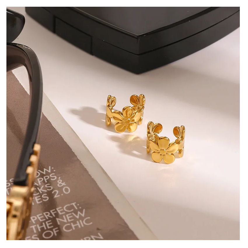 ashion French Palace Style Gold Flower Stud Earrings Bracelets Rings Set Women Gold Stainless Steel Geometric Design Gift