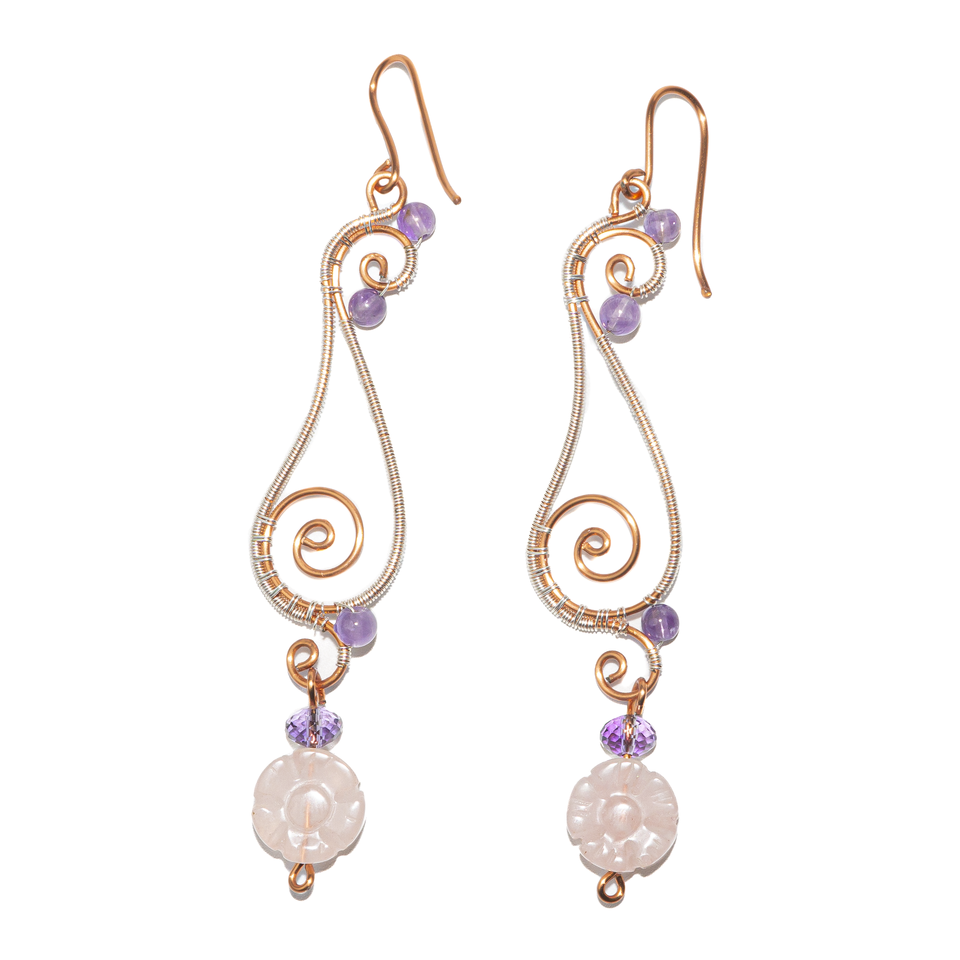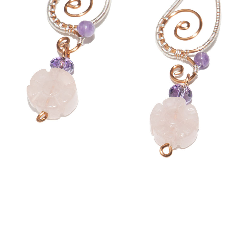 Amethyst, Amethyst Wheel, Rose Quartz Charm (5-petal flower)