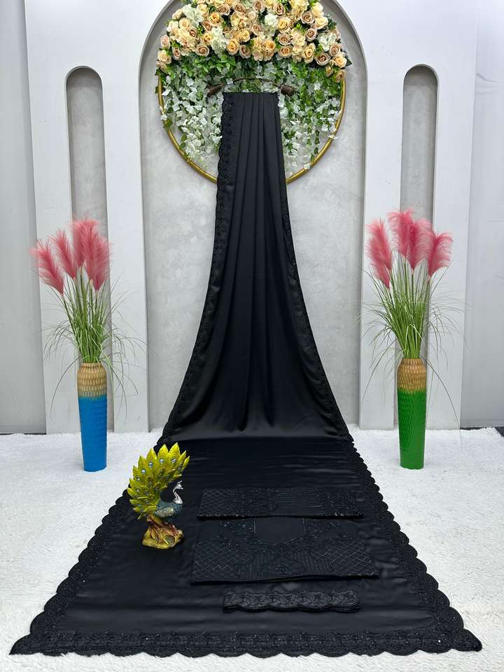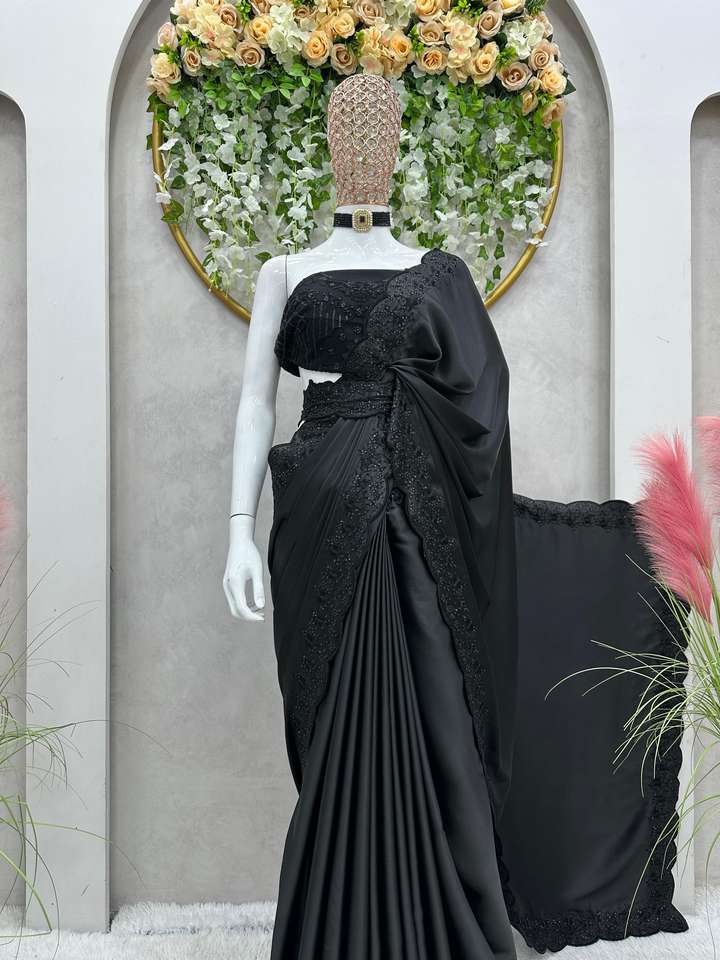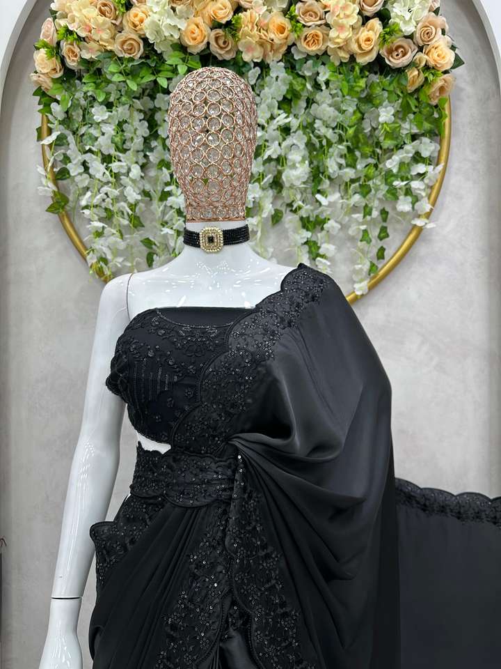 beautiful Designer Saree Satin Silk And Blouse Soft net with Thread Sequnce work Belt Satin silk
