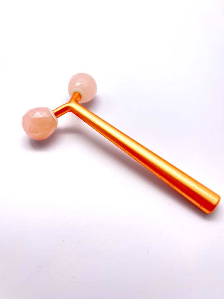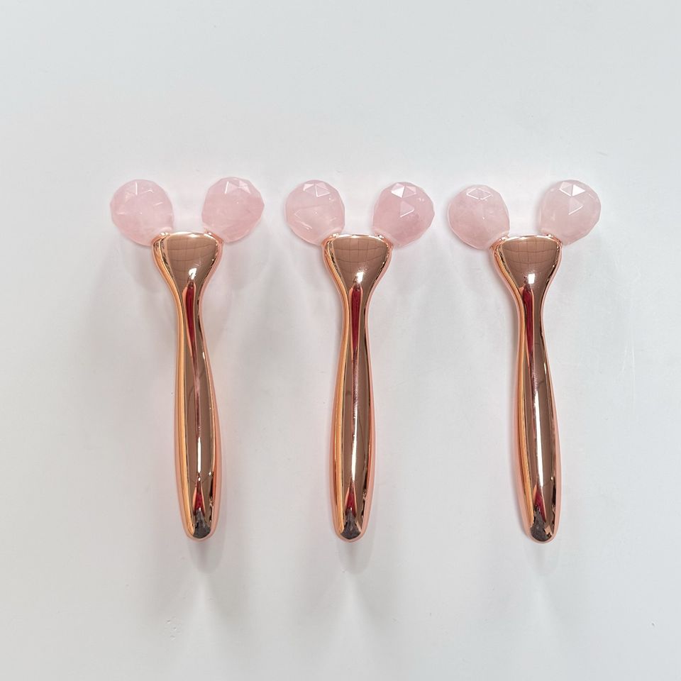Product name:pink color natural stone rose quartz 3d face roller for lady