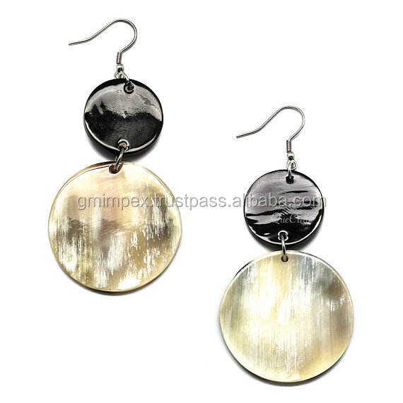 best quality Natural Horn Earrings for Women Fashionable Buffalo Cow Horn Colour natural Design from India