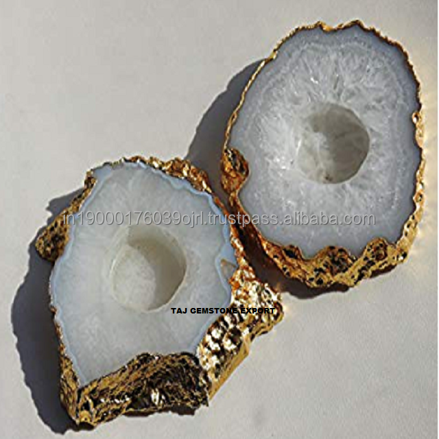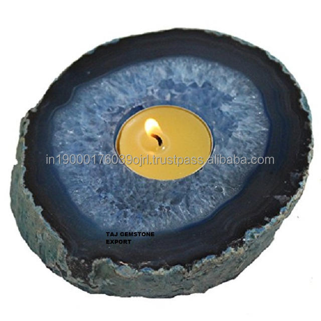Natural Crystals Healing gemstone Agate Green Onyx Stone Healing Agate Bulk Candle Tea Light Handle Holder For Decoration