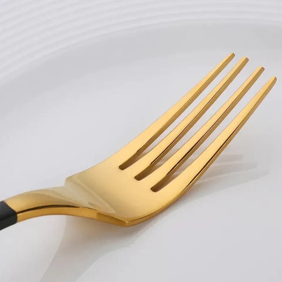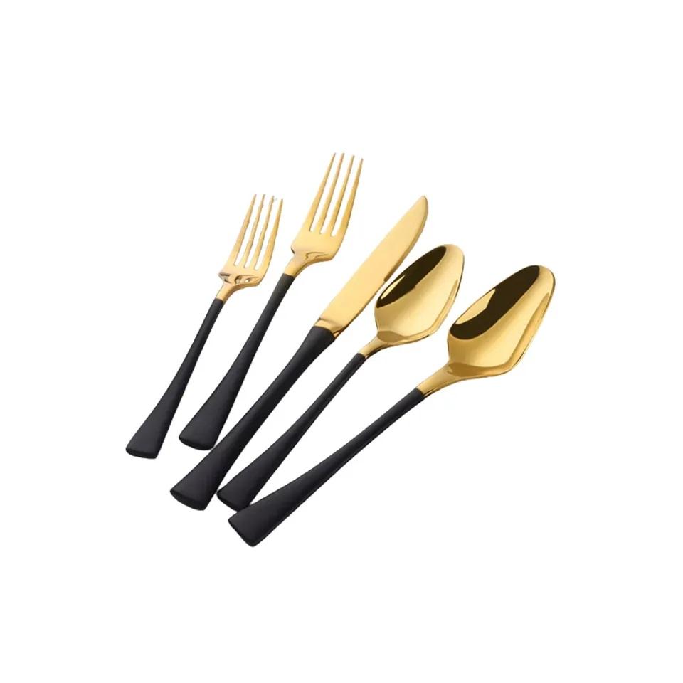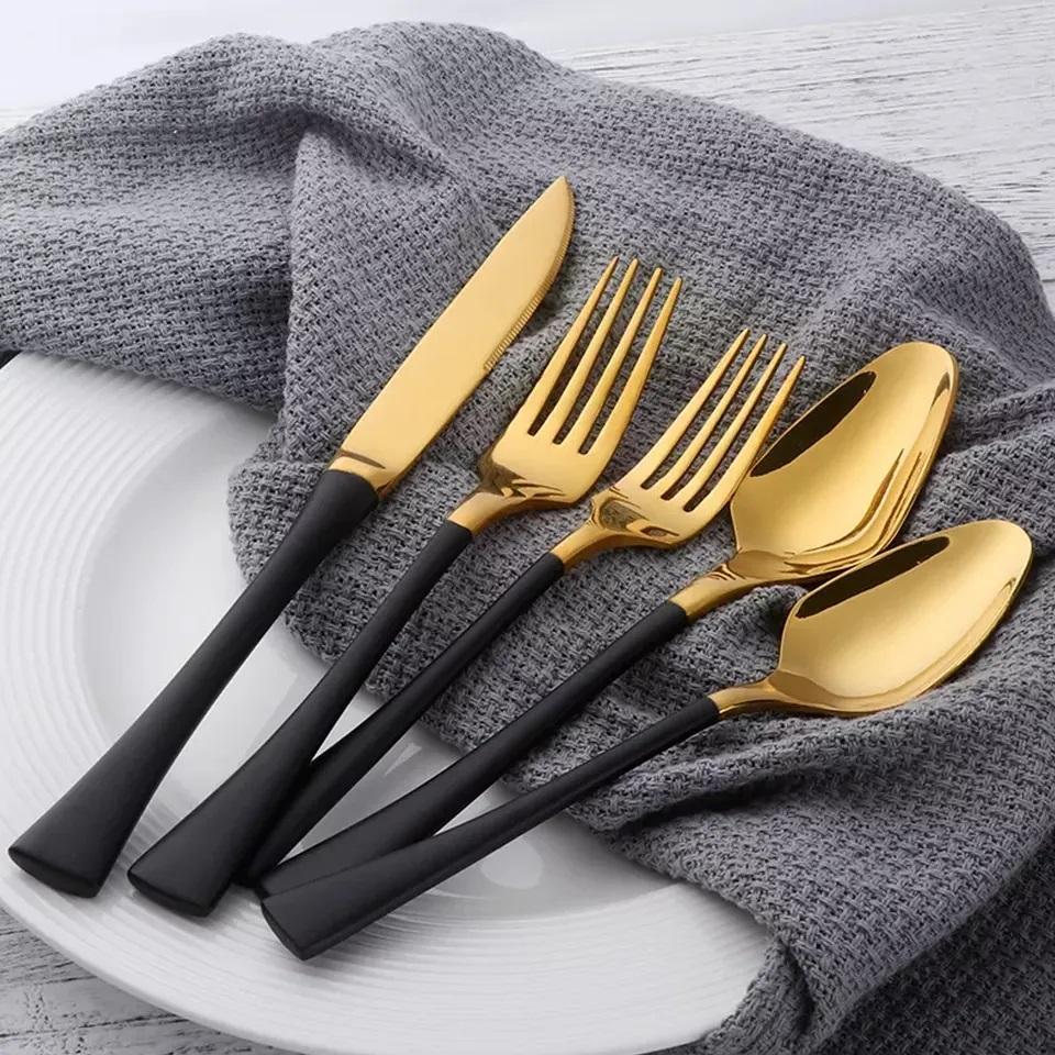 best quality gold luxury Cutlery Stainless Steel gold PVD with black handle Flatware Safe and healthy for daily use