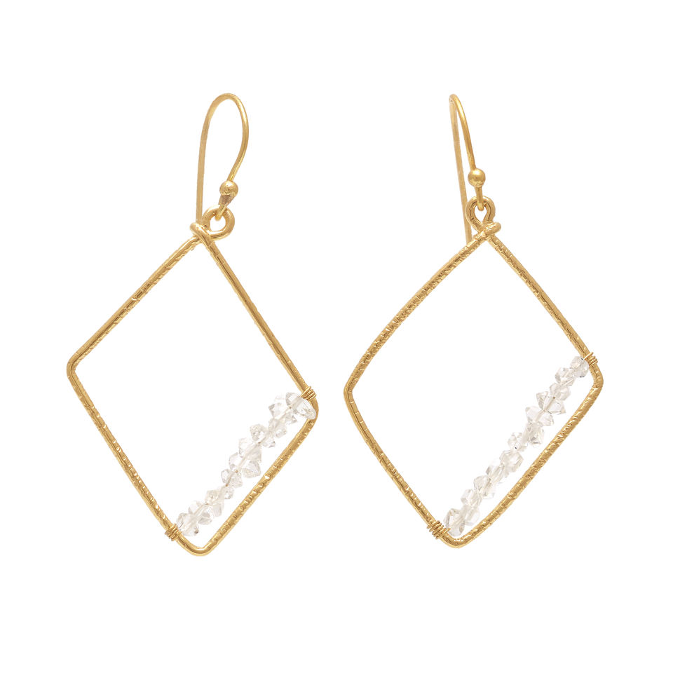 Best Quality Solid 925 Sterling Silver Herkimer Gemstone Dangle Earrings with Gold Plated Ear Wire for Wedding Party or Gift