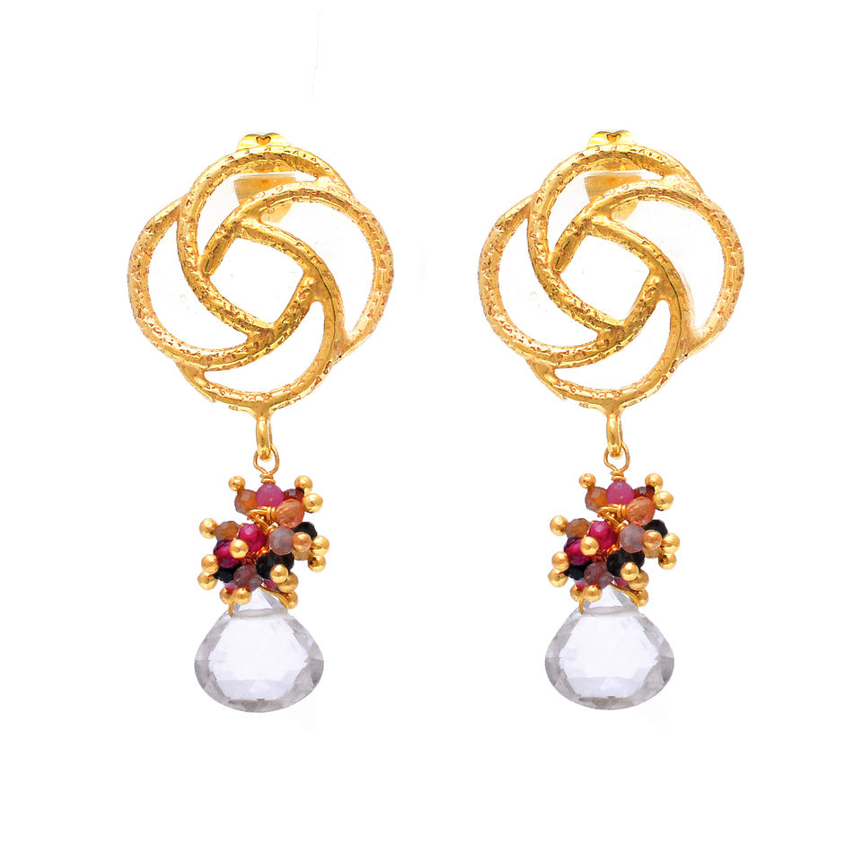 Best Quality Solid 925 Sterling Silver Multi-Gemstone Dangle Earrings Designer 18K Gold Plated Handmade Weddings Casa de Plata