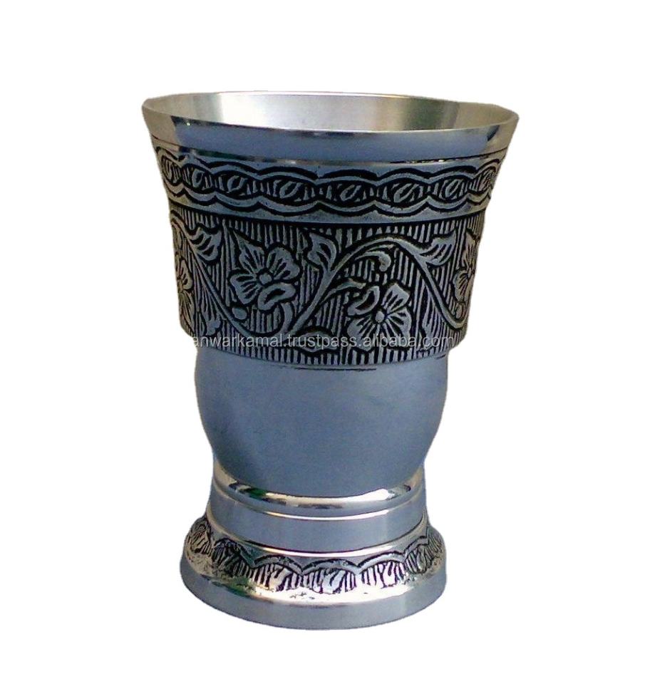 Best Quality Top Selling Wholesale Price Hand Made Brass Tumbler Holder With Silver Antique Hand Carved