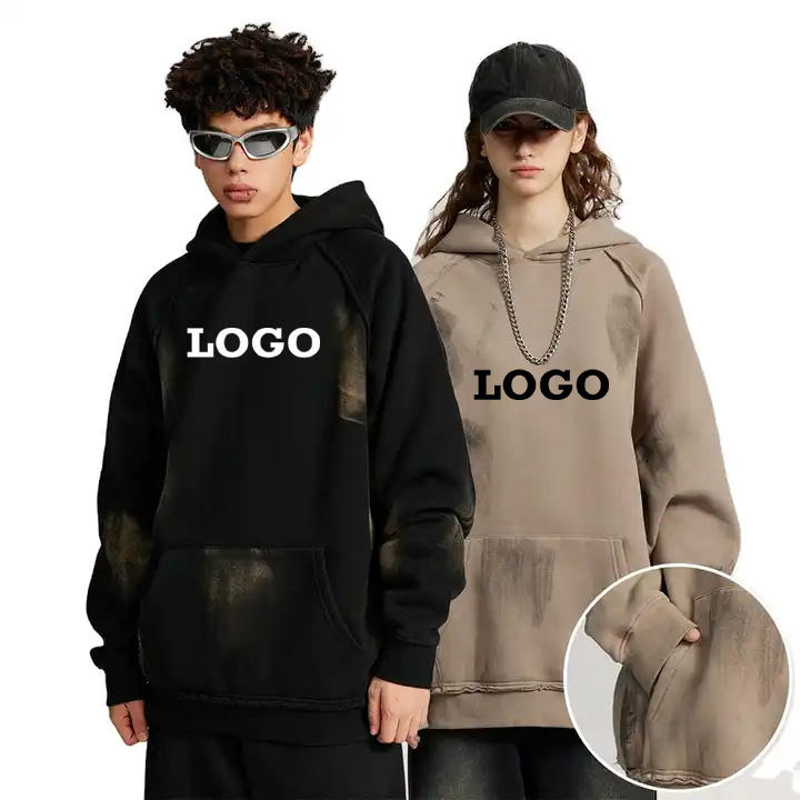best selling Custom Thick Oversized Pullover Streetwear Hoodie 350GSM Fleece Vintage Distressed Acid Washed Hoodie for Unisex