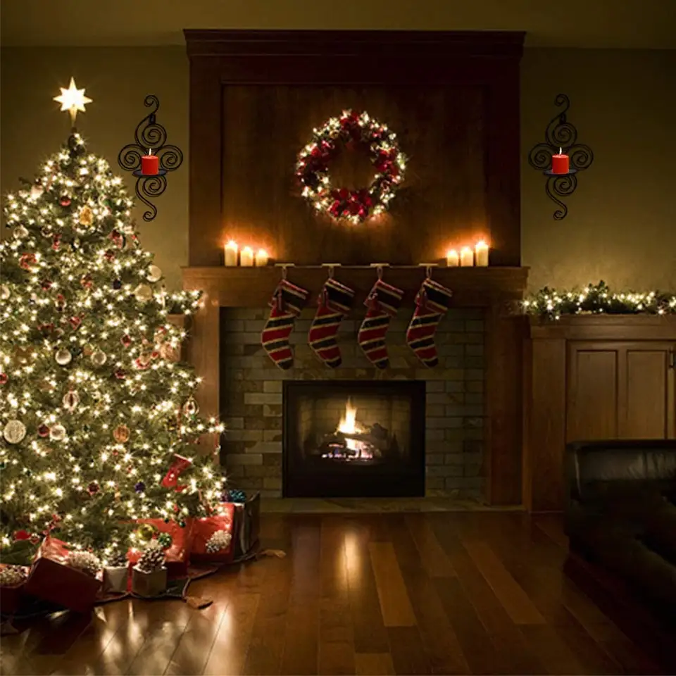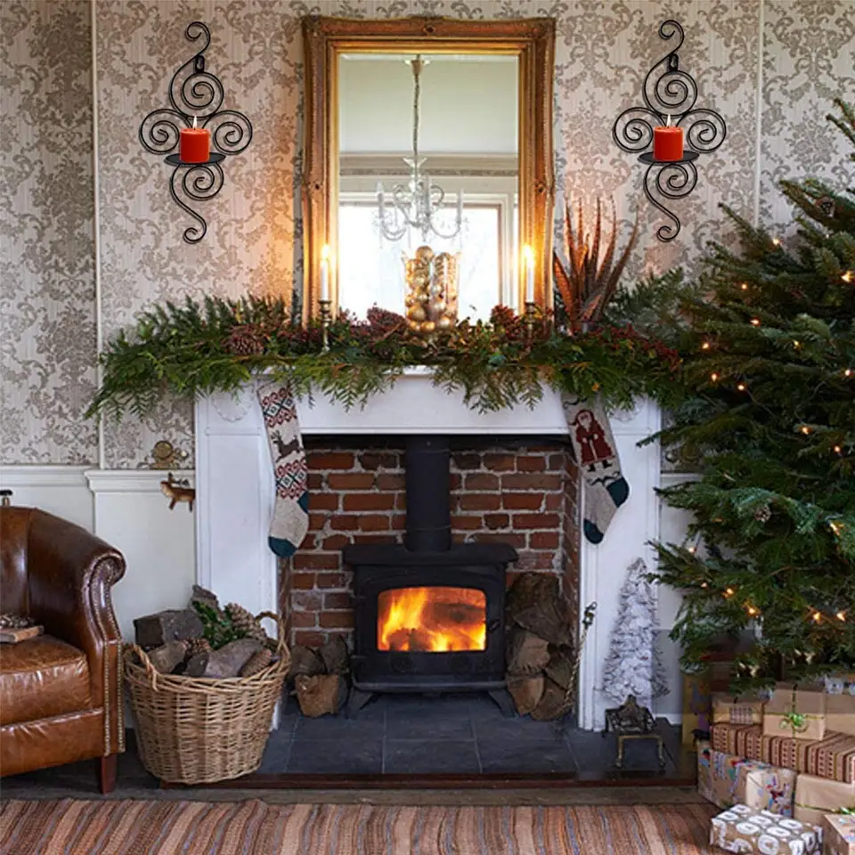 Stylish Metal Iron Decorative Wall Sconces Candle Holders Wall Mounted Black Color High Quality Material