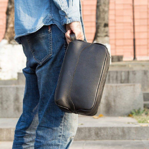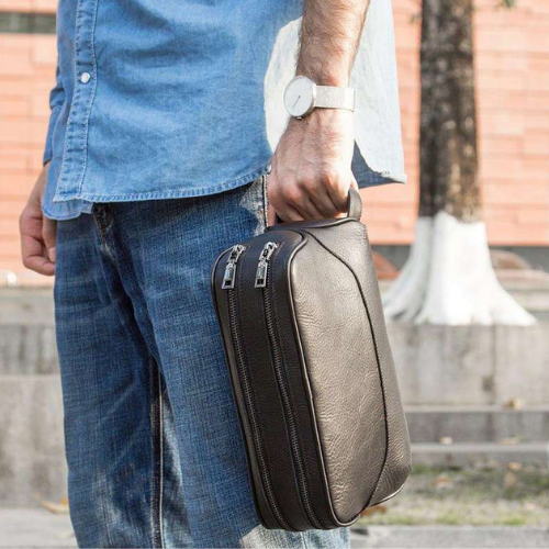 Product name:Genuine Leather Toiletry Double-Zippered Lock Clutch Purse Vanity Bag