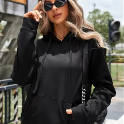 black KANGRO POCKET HOODIE Wholesale Women Casual Pull Over Hoodies for Women / Customized Fit Sizes Ladies Hoodies for Women