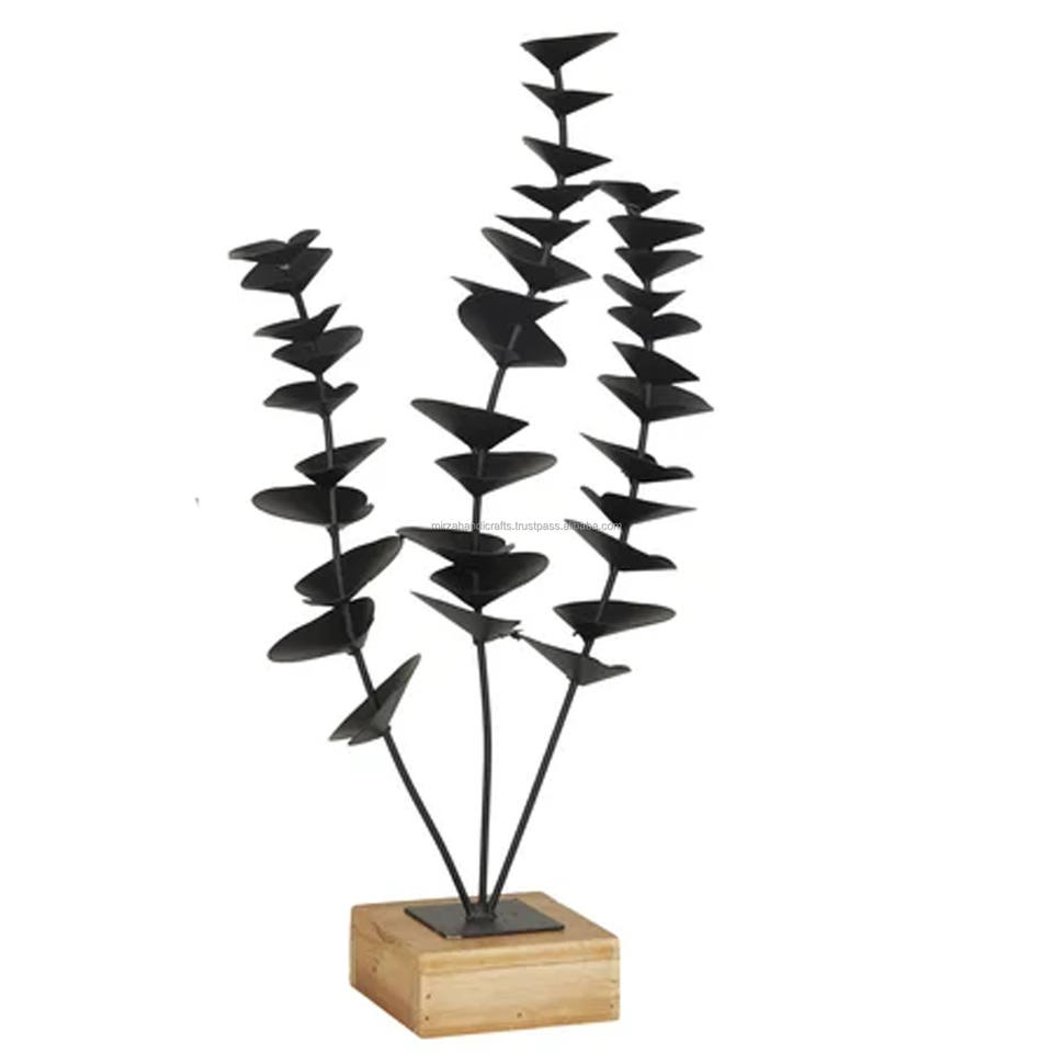 black leaves Sculpture with Wooden Base Showpiece for Living Room Bedroom and Home Decor Standard