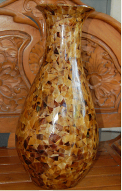 black pen yellow shell mosaic SEASHELL JEWELRY Vases seashell Motive yellow lip pen Size 30cm x 60 cm