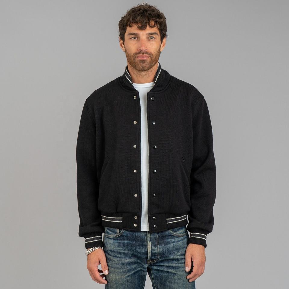 black varsity leather sleeve men winter premium jacket for men smart casual bomber heavyweight jacket