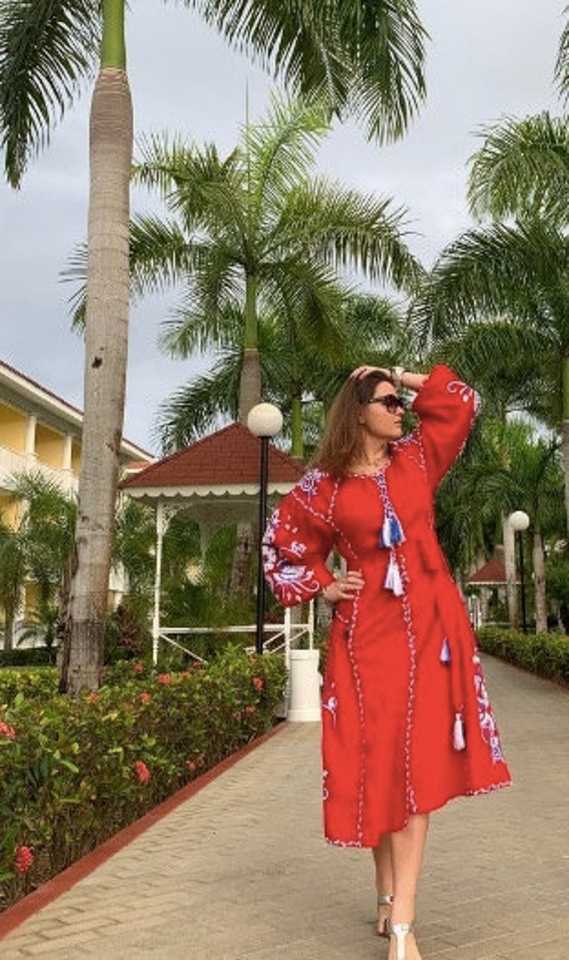 Vintage Bohemian Style Ukrainian Dress with Heavy Hand Work Flare Puff Long Sleeve Digital Printing Washable Fit Flare Design