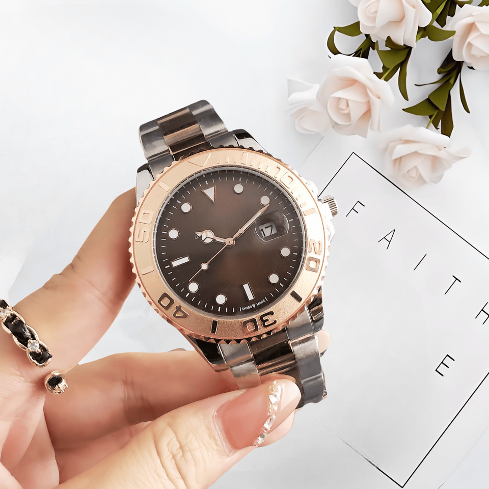 brand watches with top quality New Men Two Tone Steel Band Watch Date Display Sport Style Black Dial Wrist watches