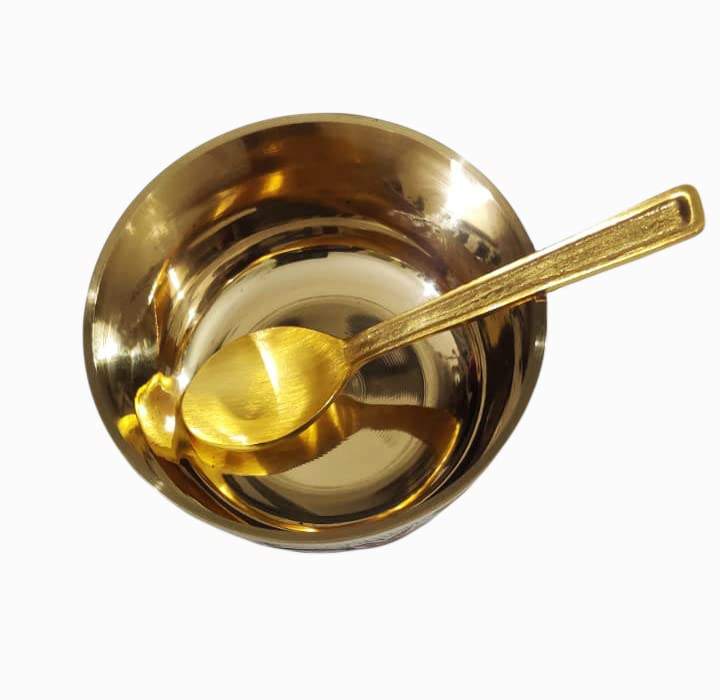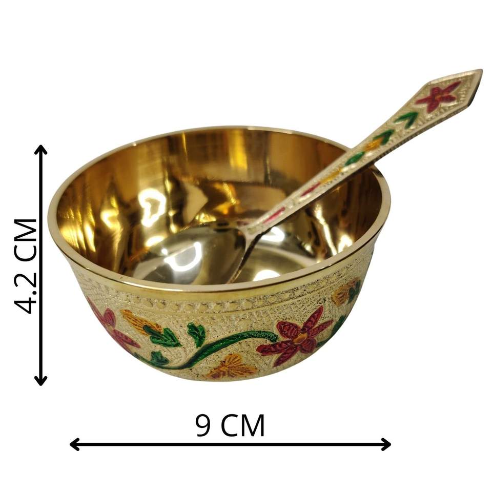 brass Heavy Meena Dessert Bowl Spoon for Sweets bowl Puja Dinner Embossed Gifting item