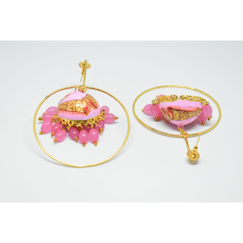 brass golden matte finishing partywear handmade meenakari beads jhumki with stud long hoop earing for girls and women