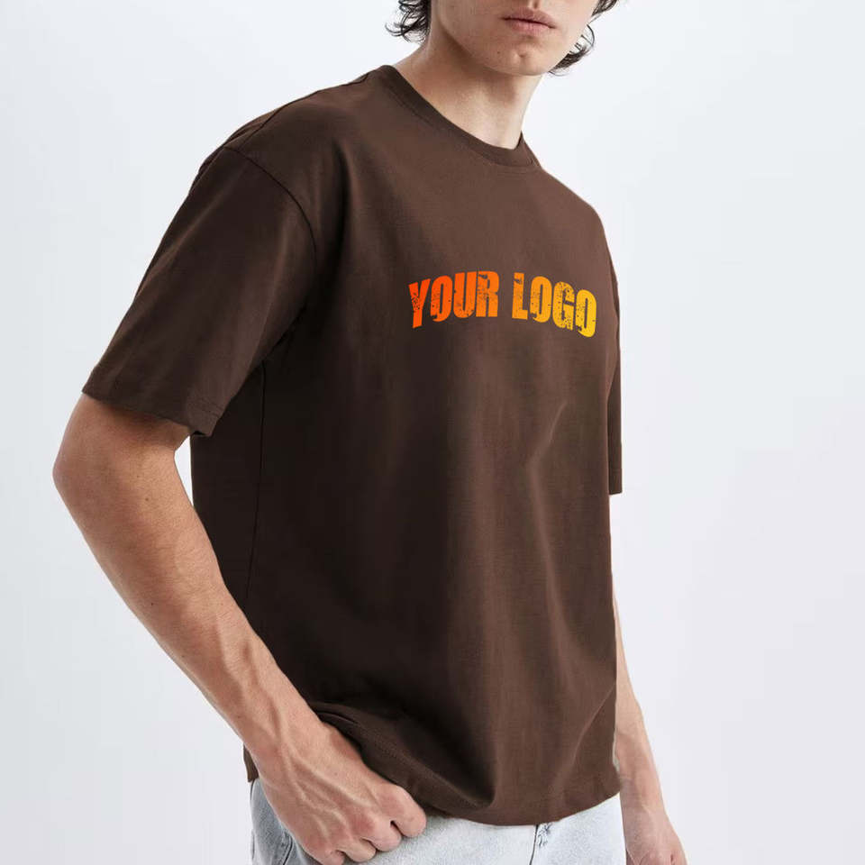 brown color Wholesale Plain T-Shirts Custom Screen Printing Digital Logo Brand Oversize Cotton T-Shirt Plus Size Men's T-Shirt