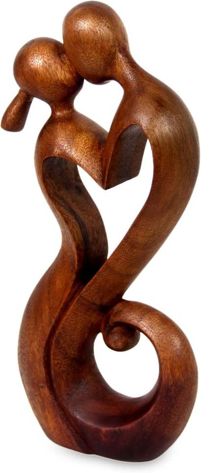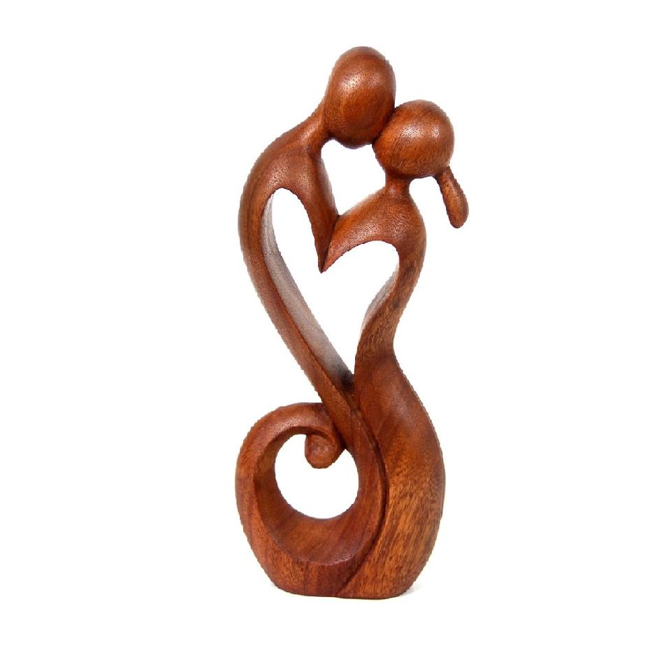 brown romantic wood sculpture 11.75 inch tall Everlasting Kiss modern heart theme decorative accent gift home decor art