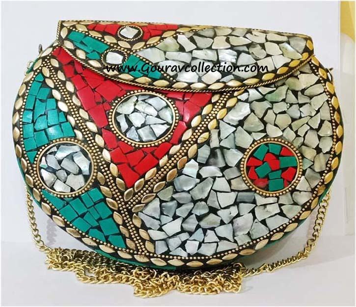 Best Price Luxury Metal Mosaic Work Bags for Women Bulk Quantity GC-BG-545 for Party Wear Indian Exporter.