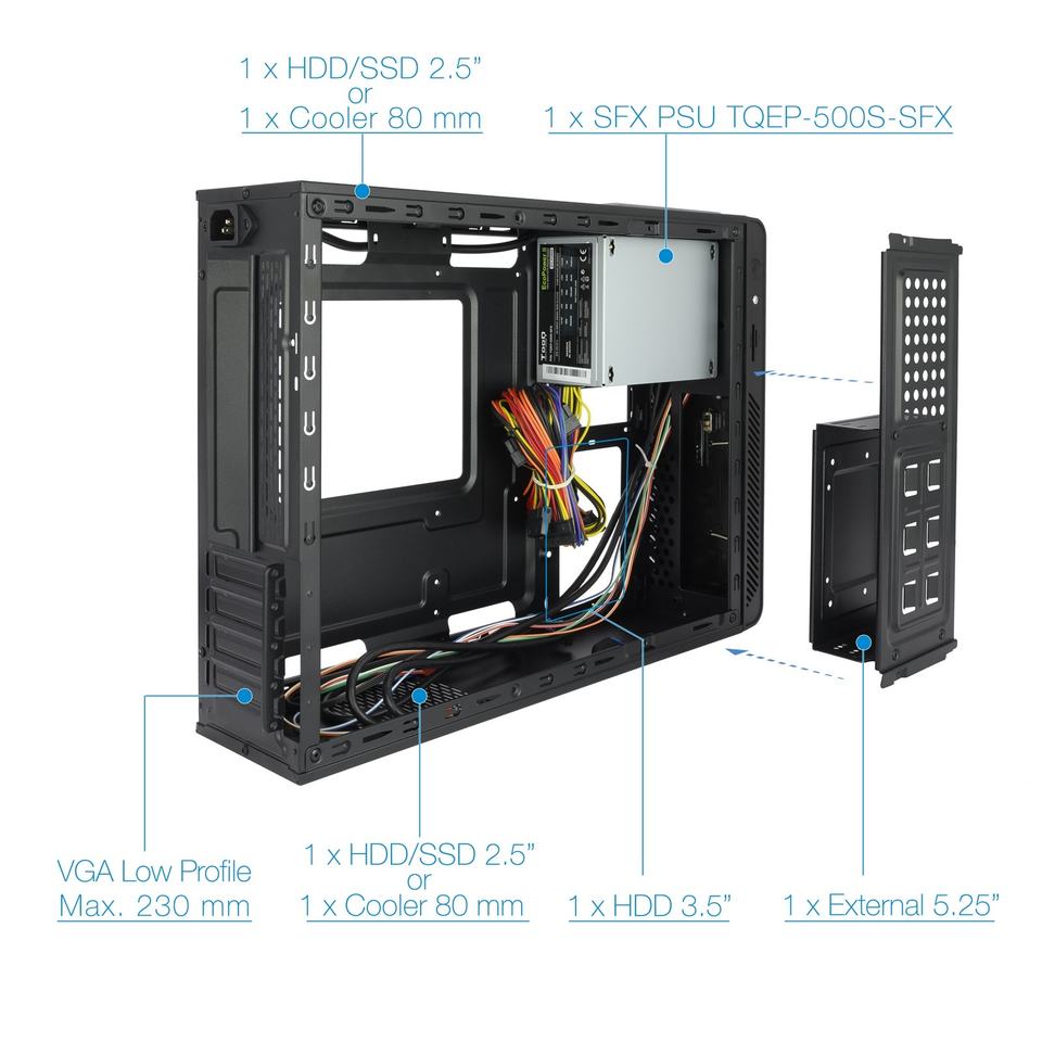 caja slim matx con lector de tarjetas, 500w de potencia; ideal para sistemas compactos y ampliaciones de almacenamiento.