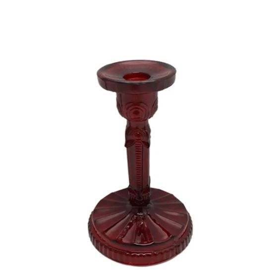 candle stand with round base red colour luxury design candle jar candle holder for home decoration