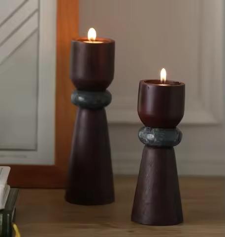 carved wooden pillar candle stand with white finish for festival diwali christmas decorative item