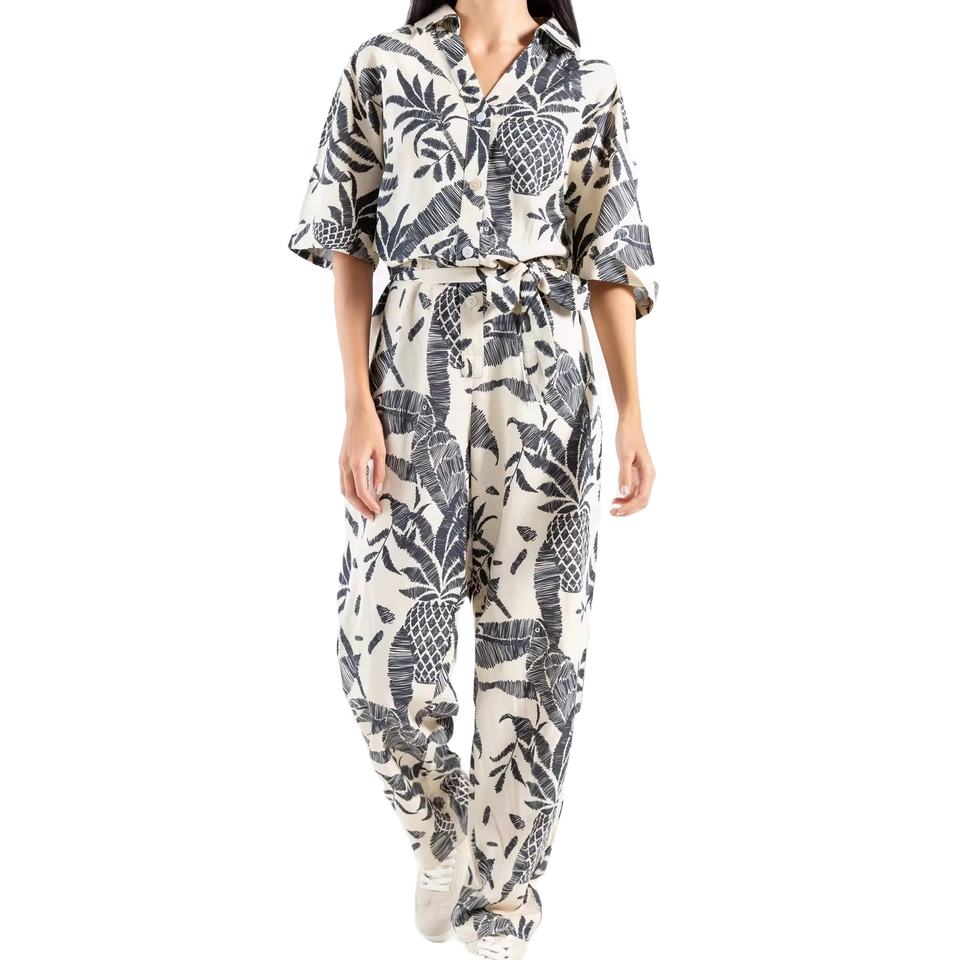 2025 Floral Printed Collar Casual Wear Jumpsuit Set for Women High Quality OEM Bulk Manufacturing Low MOQ's