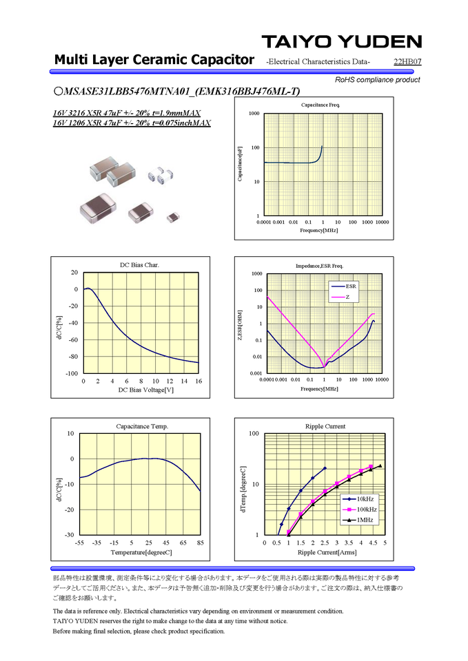 Specification:CERAMIC CAPACITORS SIZE 1206/3216