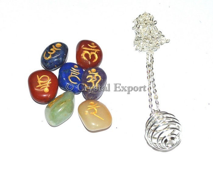 Chakra Stone Necklace : Chakra Sanskrit Tumbled Cage Necklace with Chain