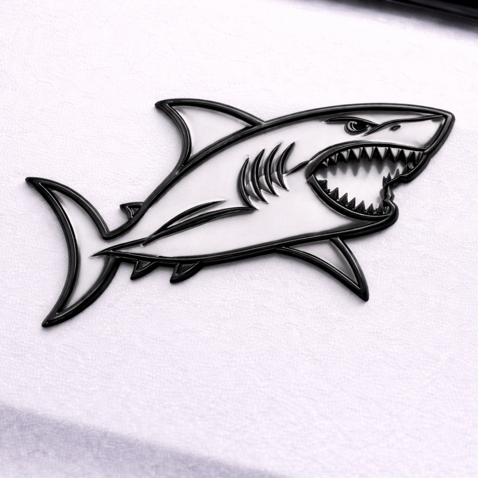 Classic Design Love Ocean Business Souvenir Gifts Soft Enamel Custom Black Metal Shark Car Emblem Gold-Plated Die Cutting