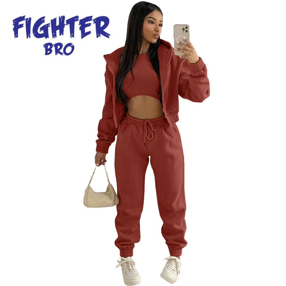 classic style ladies cotton tracksuit loungewear outfit sporty look gym clothing cotton sweatshirt set cotton zipper