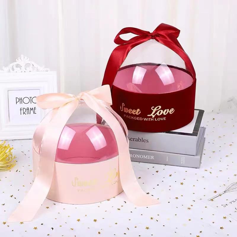 clear Lid Cover Keepsake Ribbon Wedding Favour Rigid Round Shape Tube Box Flower Jewelry Packaging