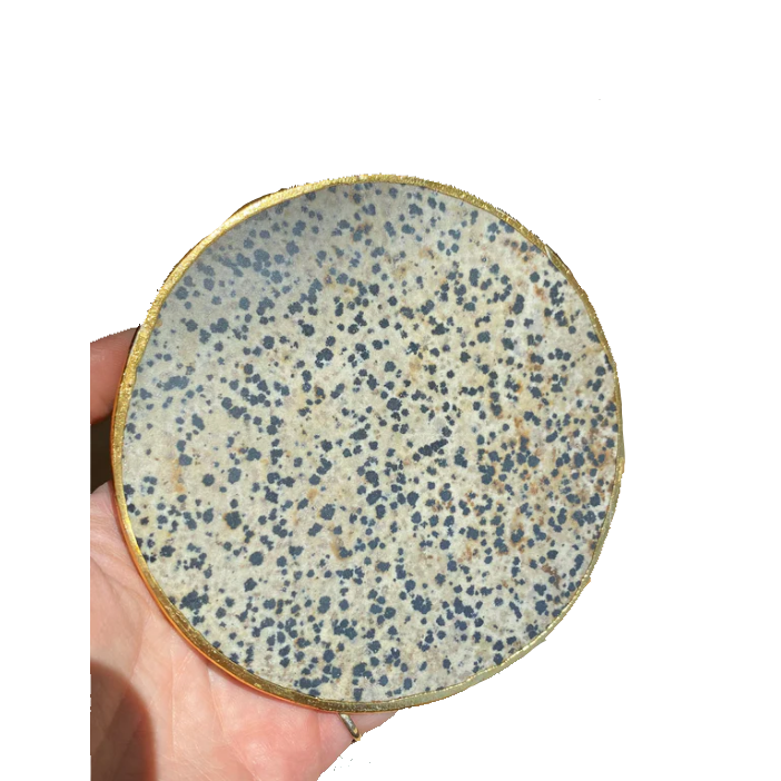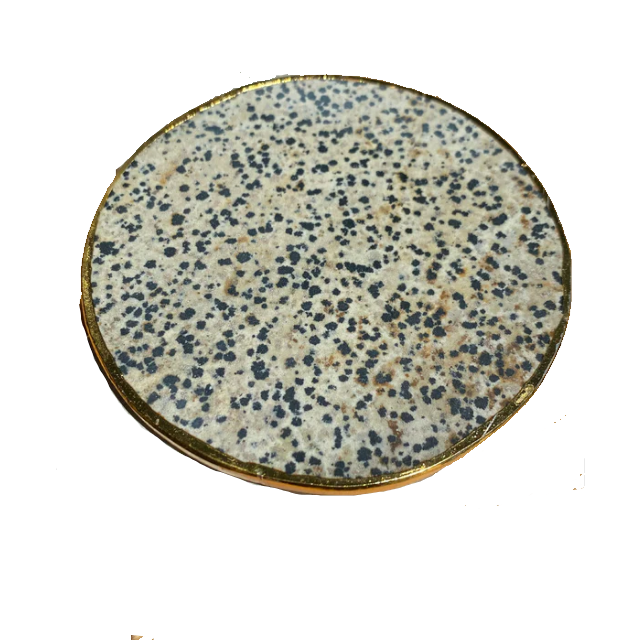 coaster Stone Dalmatian jasper Engraved Reiki Healing Crystal Charging Disc Coasters for Drink with Coffee Stand Wholesaler