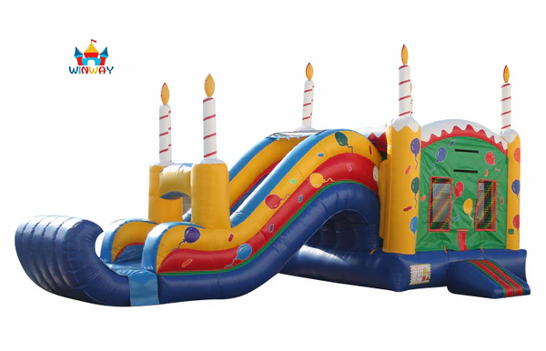 commercial pvc inflatable birthday cake bounce house combo jump castle with slide water pool