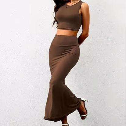 2025 Women's Fashion Crop Top Skirts Set Comodo7 Sexy One Shoulder Slim Short Length Party Nightclub Outfits Matching Outfit