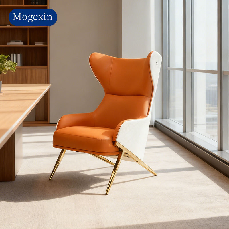 contemporary leather lounge chair elegant living room armchairs Hotel Retro Recliner Armchair base metal home Furniture Seating