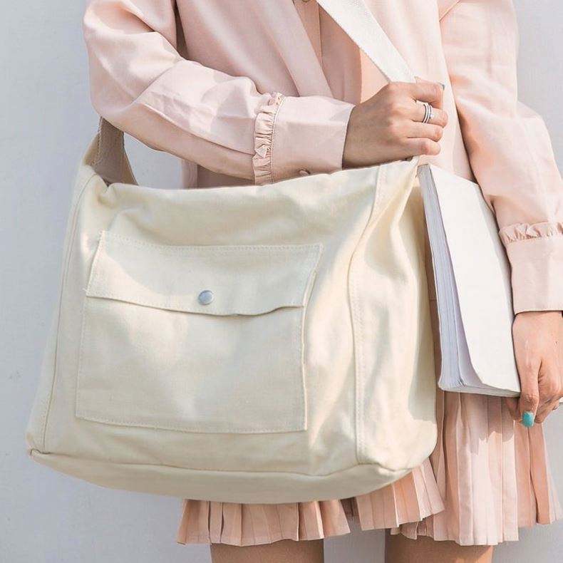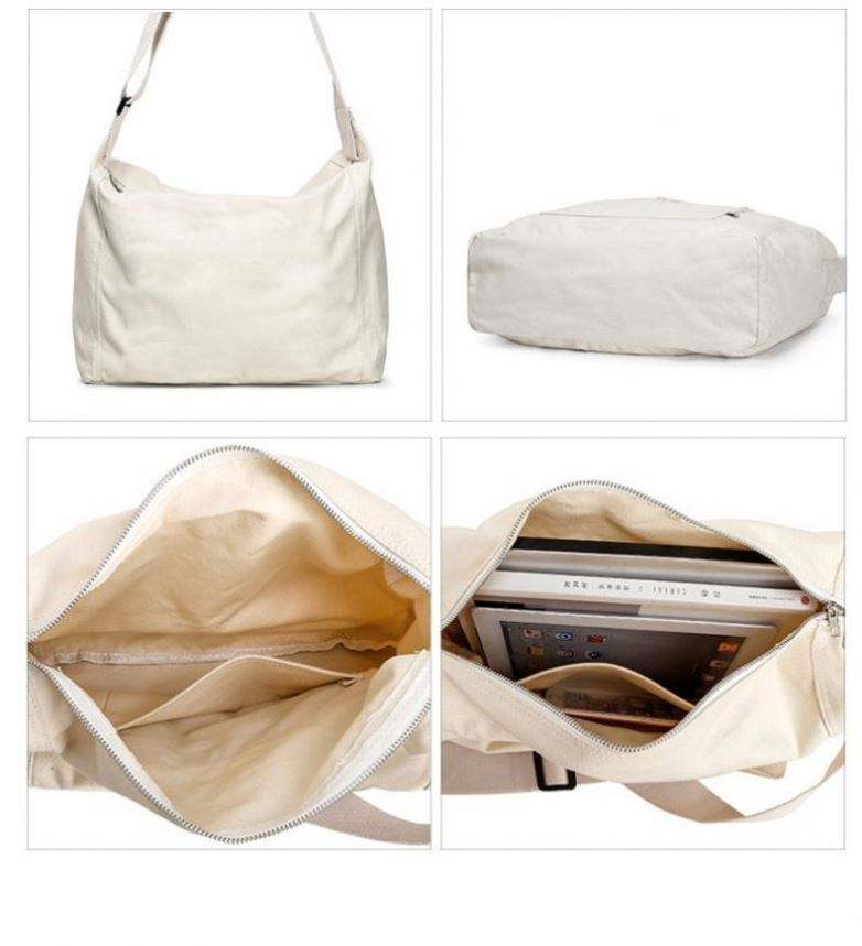 Cotton Canvas School Bag Crossbody Art Tote Bag,zipper Tote Canvas Shoulder Bag