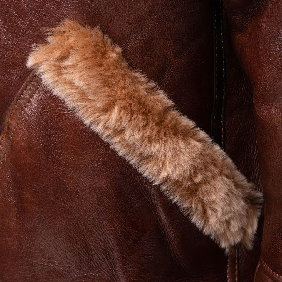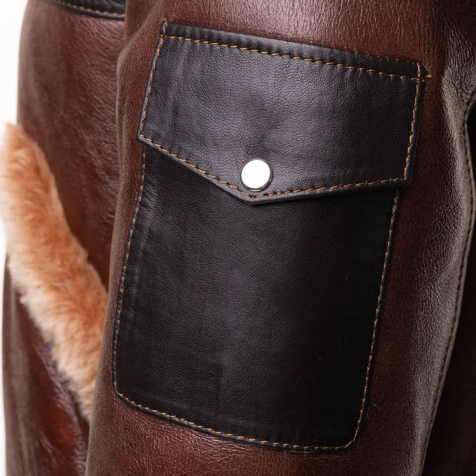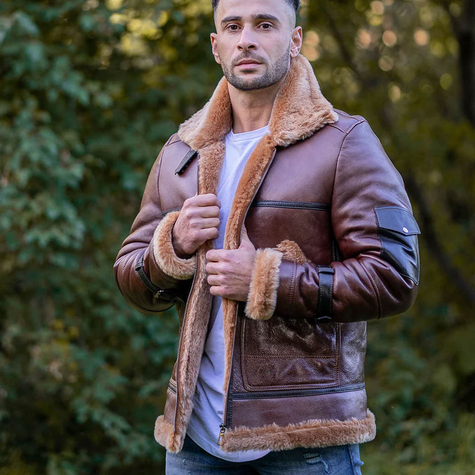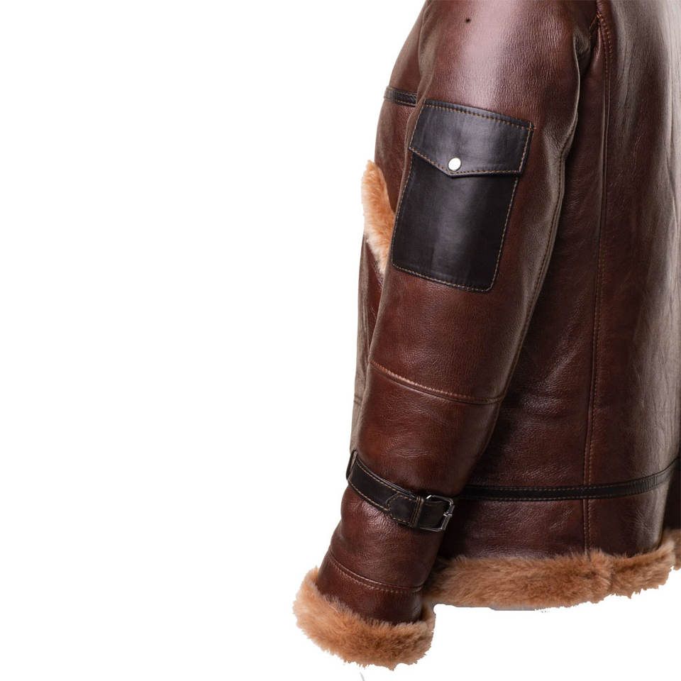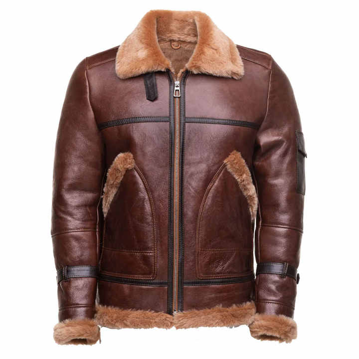 cow leather fur Men's Brown Sheepskin Real Leather Jacket Coat B3 Bomber Flying Shearling Zipper Closure Moto & Biker Jackets