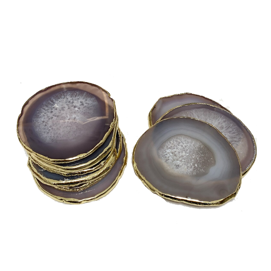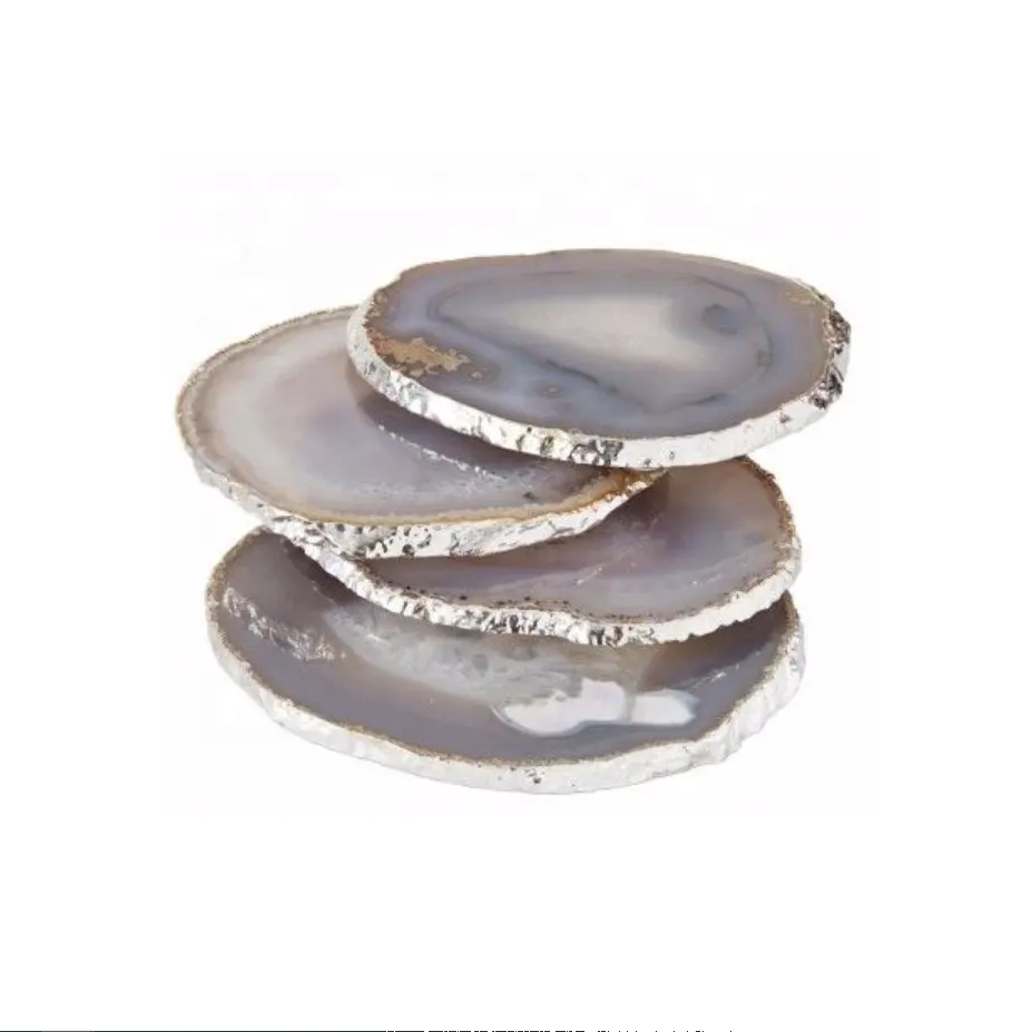 High Quality Grey Agate Stone Coasters Natural Quartz Engraved Drink Coasters Handmade Stone Craft Gift Wholesale Gift