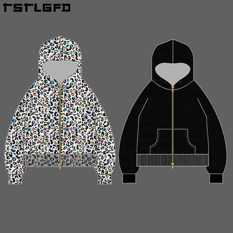 custom Organic Cotton Washed Long Sleeve Leopard Print Zip-Up Reversible Men's Hoodie