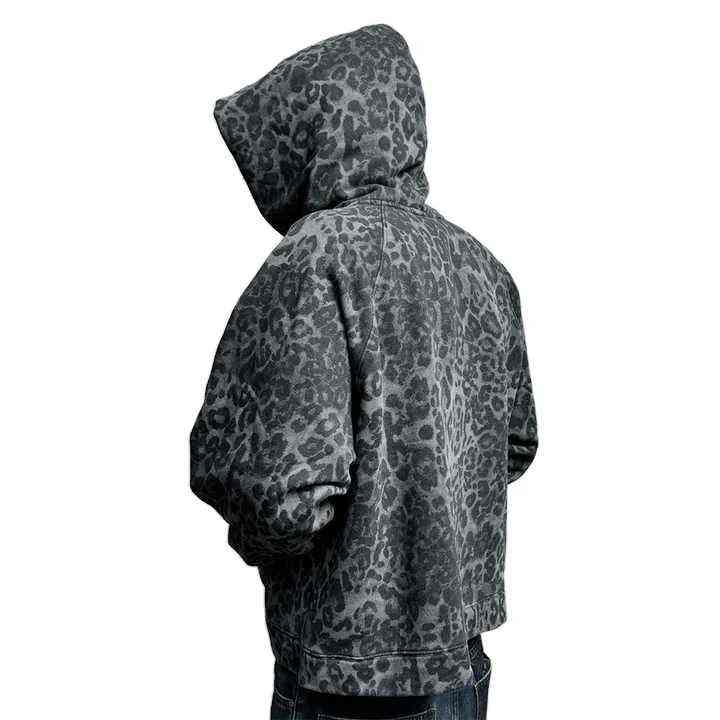 custom Sweatshirt 100% Percent Cotton All Over Leopard Printed Boxy Fit Zipper Acid Wash Hoodie for men
