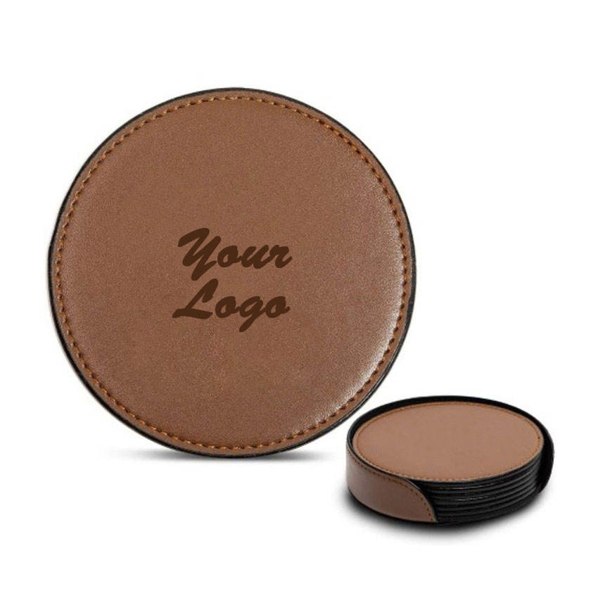 Custom logo Corporate Gift Leather Drink Coasters with Holder
