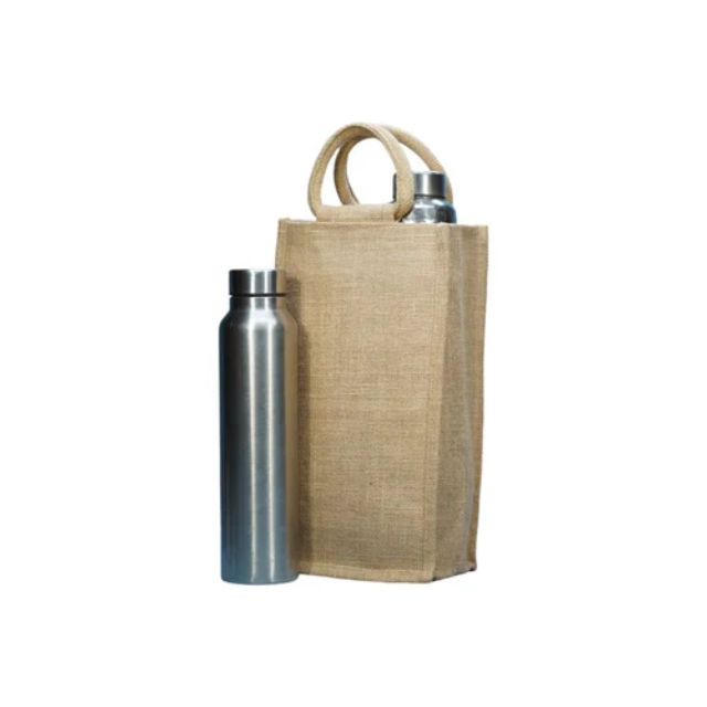 custom logo zipper ladies women shopping jute canvas Winery hessian burlap jute tote 1 bottle Bag with handle canvas pocket