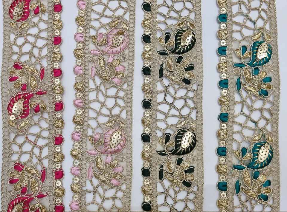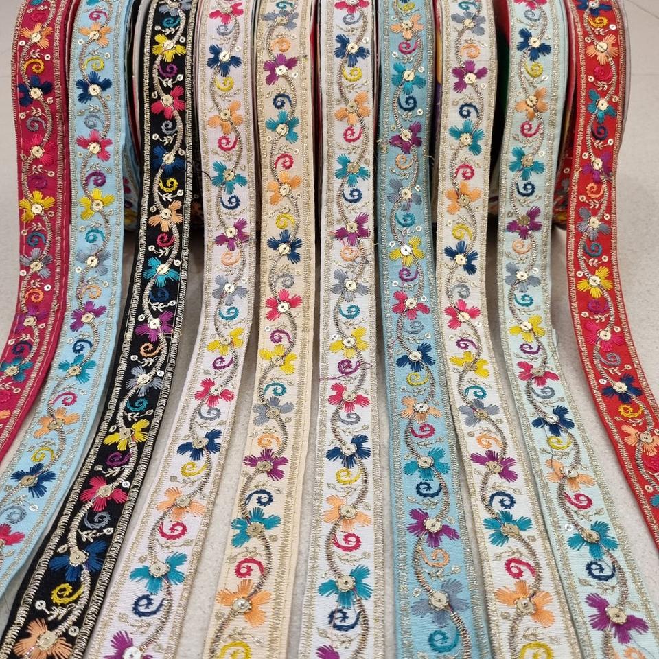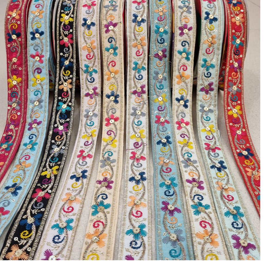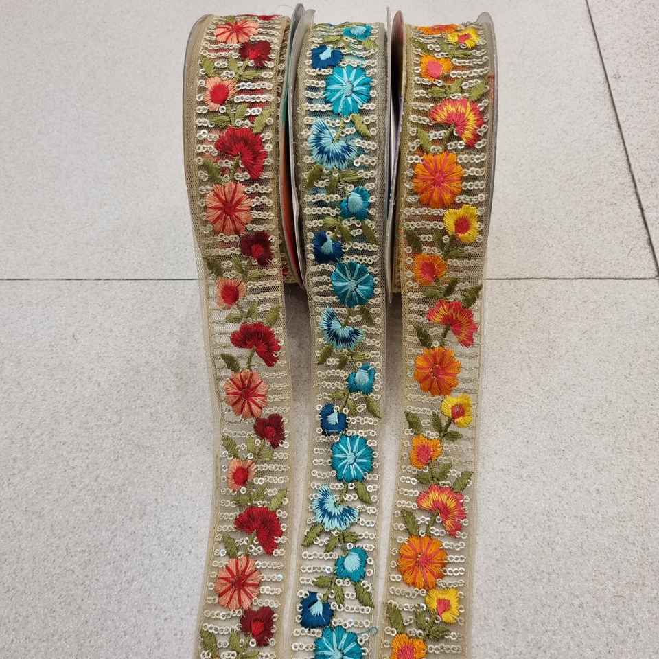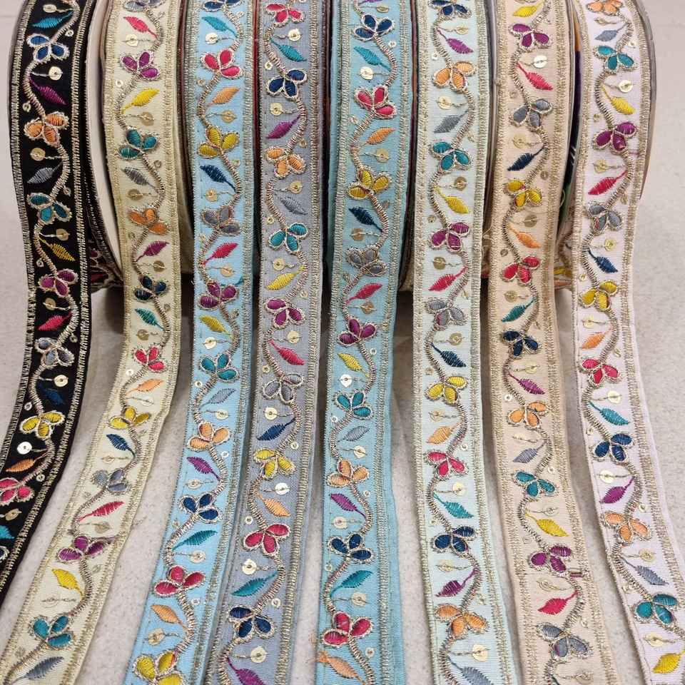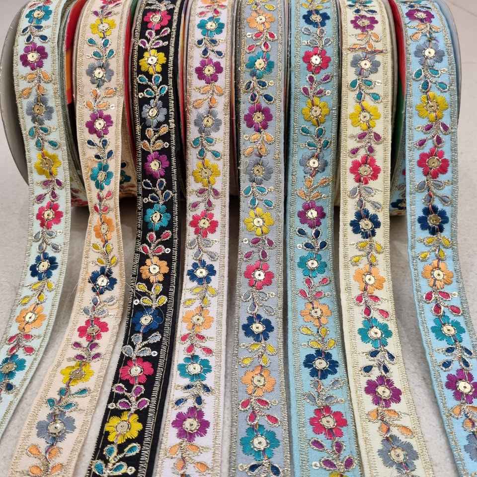 Custom-Made 1 Inch Wide Embroidered Silk Laces Multi-Colour Options Attractive Bow Sequins Embroidery Gifts Perfect Grosgrain