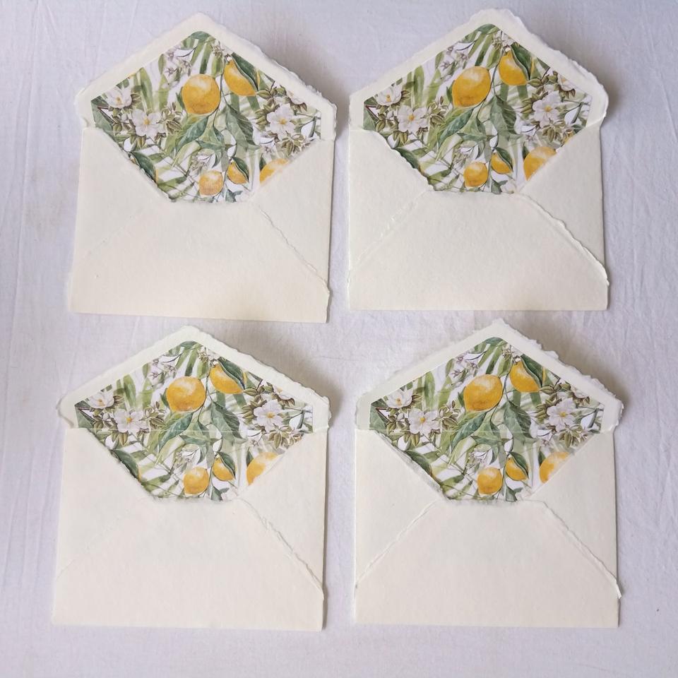 Custom Made Handmade Eco-Friendly Deckle Edged Paper Envelopes Citrus Themed Liner Custom Logo Printing for Wedding Stationers
