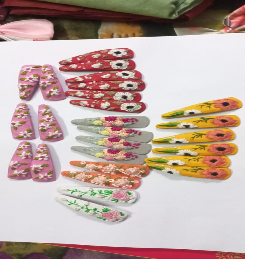 Custom Made Embroidered Hair Clips with Floral Patterns for Resale by Hair Accessory Can Be Provided Multi Coloured Pins.