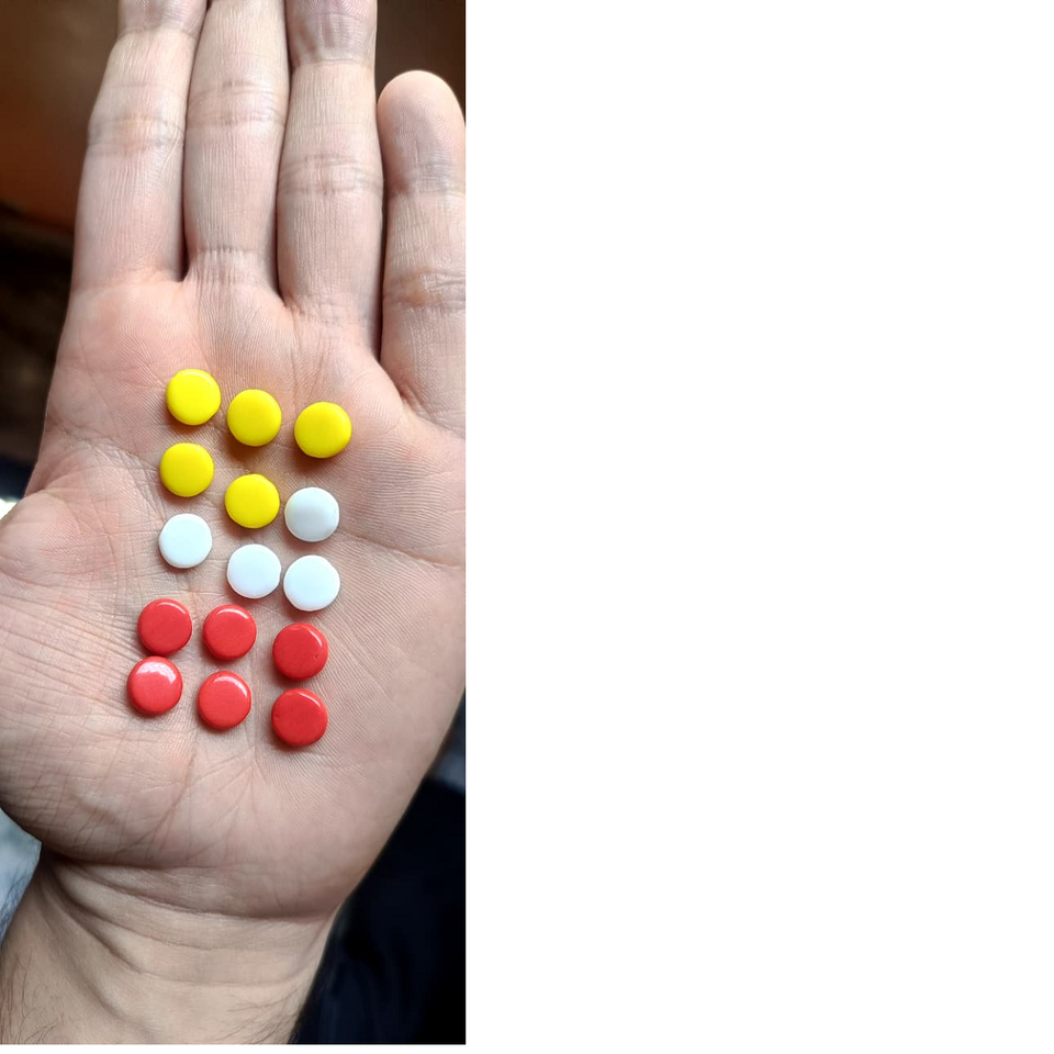 custom made flat disc beads in red , white and yellow colors for african jewelry designers for resale in size 6mm