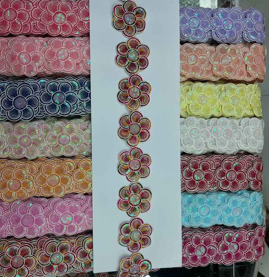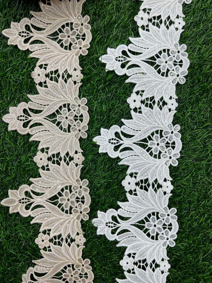 custom made floral embroidered in eleven colour ways in classic cut work designed in 4 inch width for bridal wear enhancement.