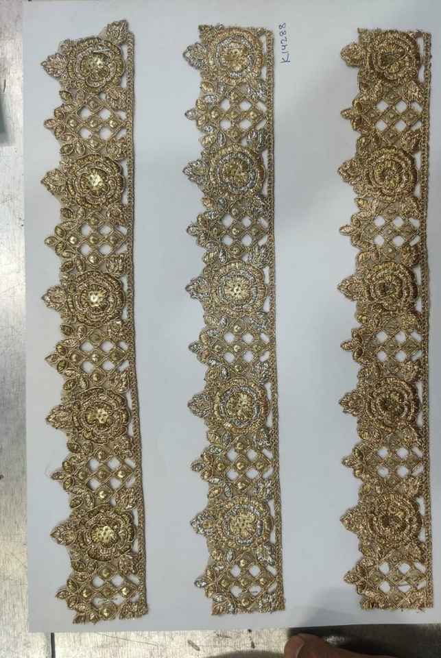 Custom Made Floral Embroidered in Gold,silver & Bronze Colour Ways in Ethnic Designs for Various Purposes in Different Sizes